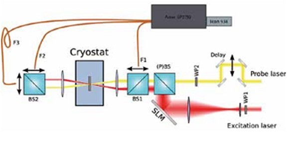 在實(shí)驗(yàn)中采用脈沖鈦寶石激光器,空間光調(diào)制器,5K低溫制冷機(jī),收集光路以及Andor SR750光譜儀以及 Andor DU934 深耗盡型CCD。在極化實(shí)驗(yàn)中,為了能夠測試內(nèi)部空穴的特性,采用光纖收集反射或者透射的光。而在量子點(diǎn)的實(shí)驗(yàn)中,收集的是量子點(diǎn)的發(fā)光。通過光纖,我們可以選擇不同的空間點(diǎn)進(jìn)行收集。