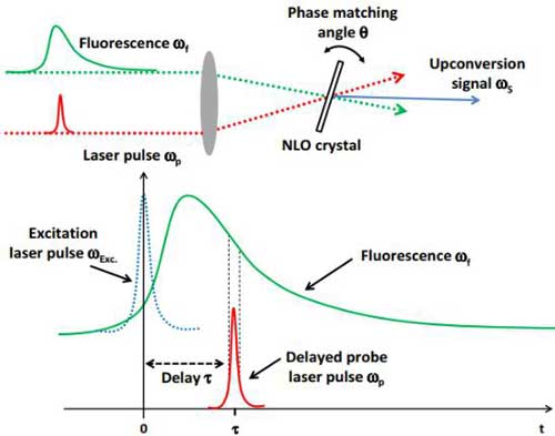 飛秒熒光上轉(zhuǎn)換技術(shù)是使用空間轉(zhuǎn)換時(shí)間的原理,通過光子上轉(zhuǎn)換的技術(shù)將熒光信號(hào)和探測信號(hào)來產(chǎn)生新的頻率的信號(hào)。