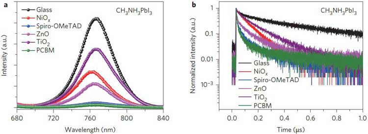 用PL和TRPL反饋CH3NH3PbI3與不同材料傳輸層的相互作用[3]