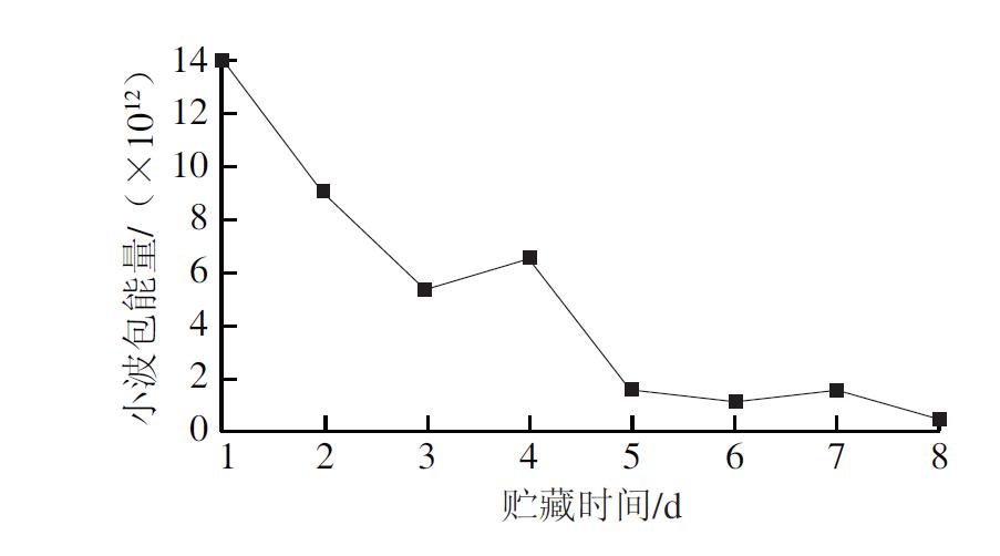 圖3 不同貯藏日特征激發(fā)波長(zhǎng)下發(fā)射光譜小波包分解*低頻段能量總和變化