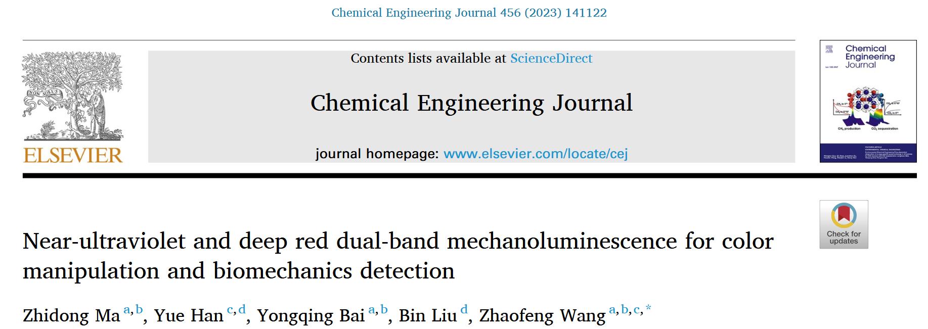 中國科學(xué)院蘭州化學(xué)物理研究所王趙鋒研究員團(tuán)隊(duì)在國際知名期刊Chemical Engineering Journal上發(fā)表的題為“Near-ultraviolet and deep red dual-band mechanoluminescence for color manipulation and biomechanics detection”的研究論文。該文章報(bào)道了一種同時(shí)具有近紫外和深紅色發(fā)射的高效力致發(fā)光復(fù)合彈性體Ca9Bi(PO4)7:Ce3+(CBP:Ce)/聚二甲基硅氧烷(PDMS)。