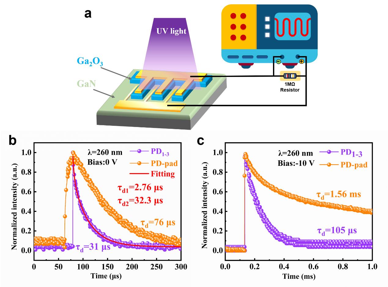 GaN/Ga2O3 PN-PD 的時(shí)間響應(yīng)特性: