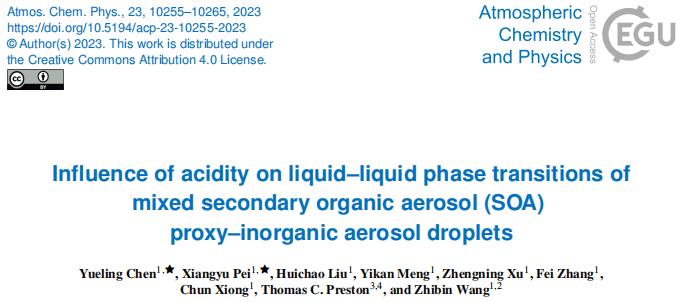 分享一篇來(lái)自浙江大學(xué)裴祥宇團(tuán)隊(duì)的新研究成果,本文以“Influence of acidity on liquid−liquid phase transitions of mixed SOA proxy–inorganic aerosol droplets”為題發(fā)表于期刊Atmospheric Chemistry and Physics,原文鏈接:doi.org/10.5194/egusphere-2023-692 浙江大學(xué)裴祥宇老師為共同第一作者。希望對(duì)您的科學(xué)研究或工業(yè)生產(chǎn)帶來(lái)一些靈感和啟發(fā)。