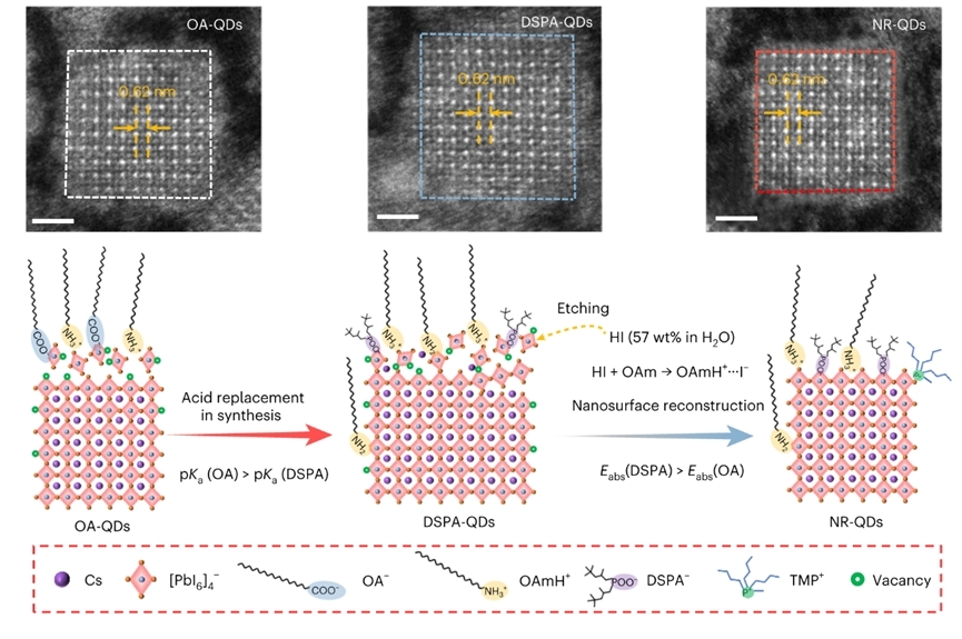 圖1. CsPbI3 量子點(diǎn)納米表面重構(gòu)