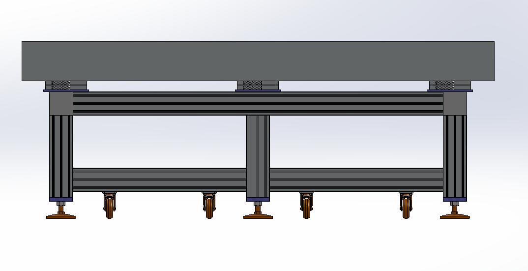 采用大理石臺(tái)面搭配雙頻阻尼隔振器及鋁型材支持腿是完全無(wú)磁環(huán)境下效果*好的解決方案