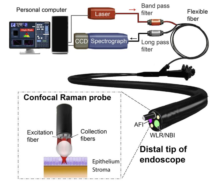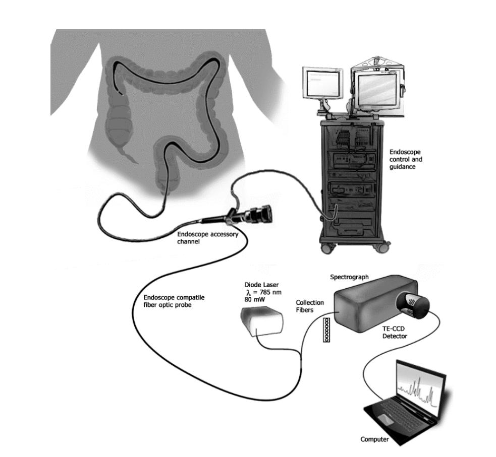 案例1:巴雷特食管是食管腺癌的前兆,早期識(shí)別異型增生等高危病變對(duì)于提高患者生存率至關(guān)重要。用于診斷BE異型增生的傳統(tǒng)內(nèi)窺鏡檢查受到診斷準(zhǔn)確性差和需要大量活檢取樣的限制,導(dǎo)致高昂的醫(yī)療成本和患者負(fù)擔(dān)。在新加坡進(jìn)行的研究涉及從373名具有不同組織學(xué)亞型的上消化道患者身上獲取體內(nèi)組織拉曼光譜,從而構(gòu)建了一個(gè)用于診斷BE異型增生的綜合拉曼庫(kù),該系統(tǒng)允許在內(nèi)窺鏡檢查期間進(jìn)行實(shí)時(shí)、無(wú)創(chuàng)或微創(chuàng)光學(xué)活檢,以更高的精度針對(duì)高風(fēng)險(xiǎn)組織區(qū)域[]。