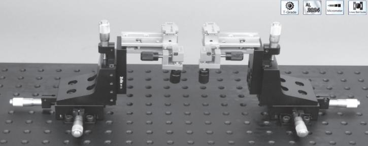 FP-和FP-XYZTL 是由整體式三維滑臺(tái)和APFP-T/TL二維傾斜滑臺(tái)組成,結(jié)構(gòu)緊湊,性價(jià)比高,非常適合工業(yè)客戶的光纖對(duì)準(zhǔn),通常左右手成對(duì)使用,并配卓立漢光生產(chǎn)的鋁合金面包板