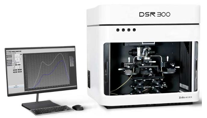 圖4以及本研究中的光譜響應度信號數(shù)據(jù)使用卓立漢光公司的DSR300微納器件光譜響應度測試系統(tǒng)測試得到。其功能全面,提供多種重要參數(shù)測試。系統(tǒng)集成高精度光譜掃描,光電流掃描以及光響應速率測試。40μm探測光斑,實現(xiàn)百微米級探測器的絕對光譜祥響應度測量,能滿足不同探測器測試功能的要求,是微納器件研究的優(yōu)選。