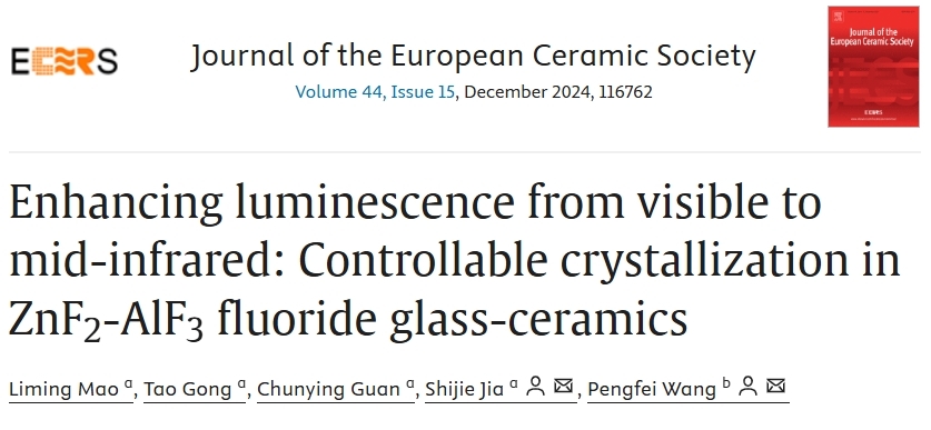 近日,哈爾濱工程大學(xué)先進(jìn)激光團(tuán)隊(duì)在新型氟化物玻璃陶瓷發(fā)光方面取得重要進(jìn)展,研究成果以“Enhancing luminescence from visible to mid-infrared: Controllable crystallization in ZnF2-AlF3 fluoride glass-ceramics”為題發(fā)表在國際期刊Journal of the European Ceramic Society上。哈爾濱工程大學(xué)為該論文第一單位,毛黎明博士為第一作者,王鵬飛教授、賈世杰副教授為共同通訊作者。