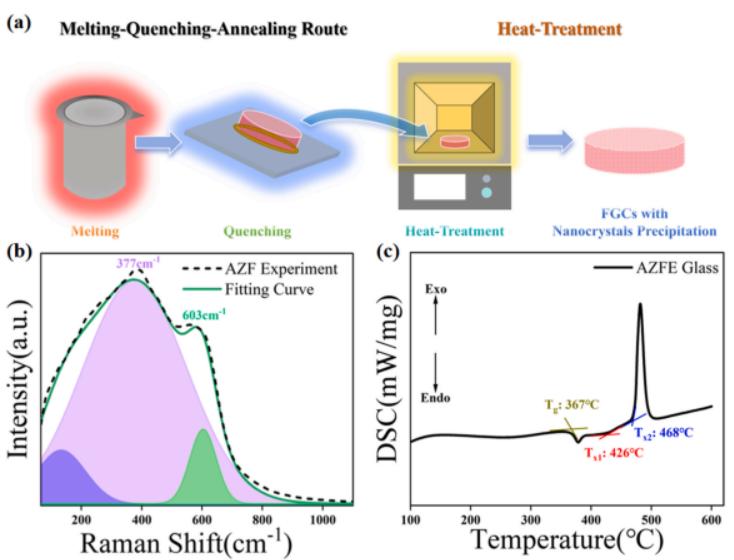 近年來,氟化玻璃材料因其具有的低聲子能量、從紫外到中紅外波段的寬透射光譜以及稀土離子的高溶解度等優(yōu)勢而受到廣泛關(guān)注。稀土摻雜的氟化物玻璃材料同樣擁有較高的透光率,這在上轉(zhuǎn)換發(fā)光和中紅外激光應(yīng)用中起著至關(guān)重要的作用。然而,盡管有這些優(yōu)點(diǎn),氟化物玻璃仍面臨著明顯的局限性。如玻璃成型范圍有限,熱穩(wěn)定性差,機(jī)械性能欠佳,阻礙了它們在光子中的廣泛應(yīng)用。相比之下,氟氧化物玻璃具有更好的穩(wěn)定性,但引入了氧化物,從而提高了玻璃基體內(nèi)的聲子能量,進(jìn)而影響了其總體的發(fā)光性能。因此,迫切需要對氟化物材料做出改進(jìn),使其既能保持氟化物玻璃材料的特殊優(yōu)勢,又能增強(qiáng)其發(fā)光性能。