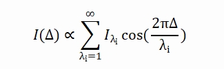 若入射光是波長(zhǎng)為λi和亮度為Iλi的多色入射源,則其干涉圖強(qiáng)度為:
