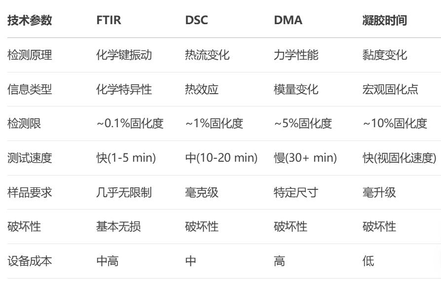 綜上比較,F(xiàn)TIR方法在測(cè)定環(huán)氧樹脂固化率方面具有一些優(yōu)勢(shì)和特點(diǎn),包括: