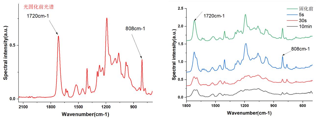 圖5 UV固化環(huán)氧丙烯酸酯經(jīng)過不同紫外曝光時(shí)間后的紅外光譜測(cè)定結(jié)果