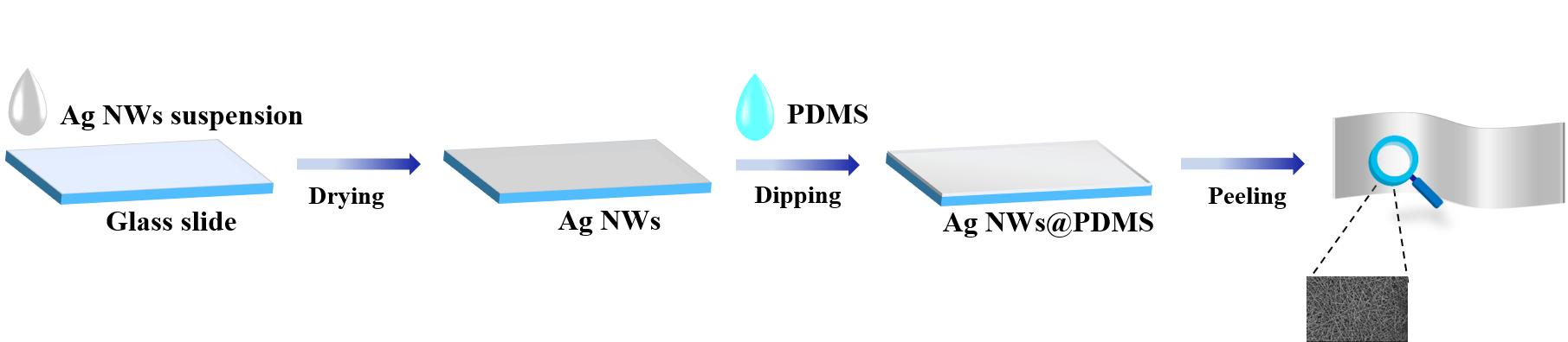 圖1: 嵌入式 Ag NWs@PDMS基底的制備示意圖。