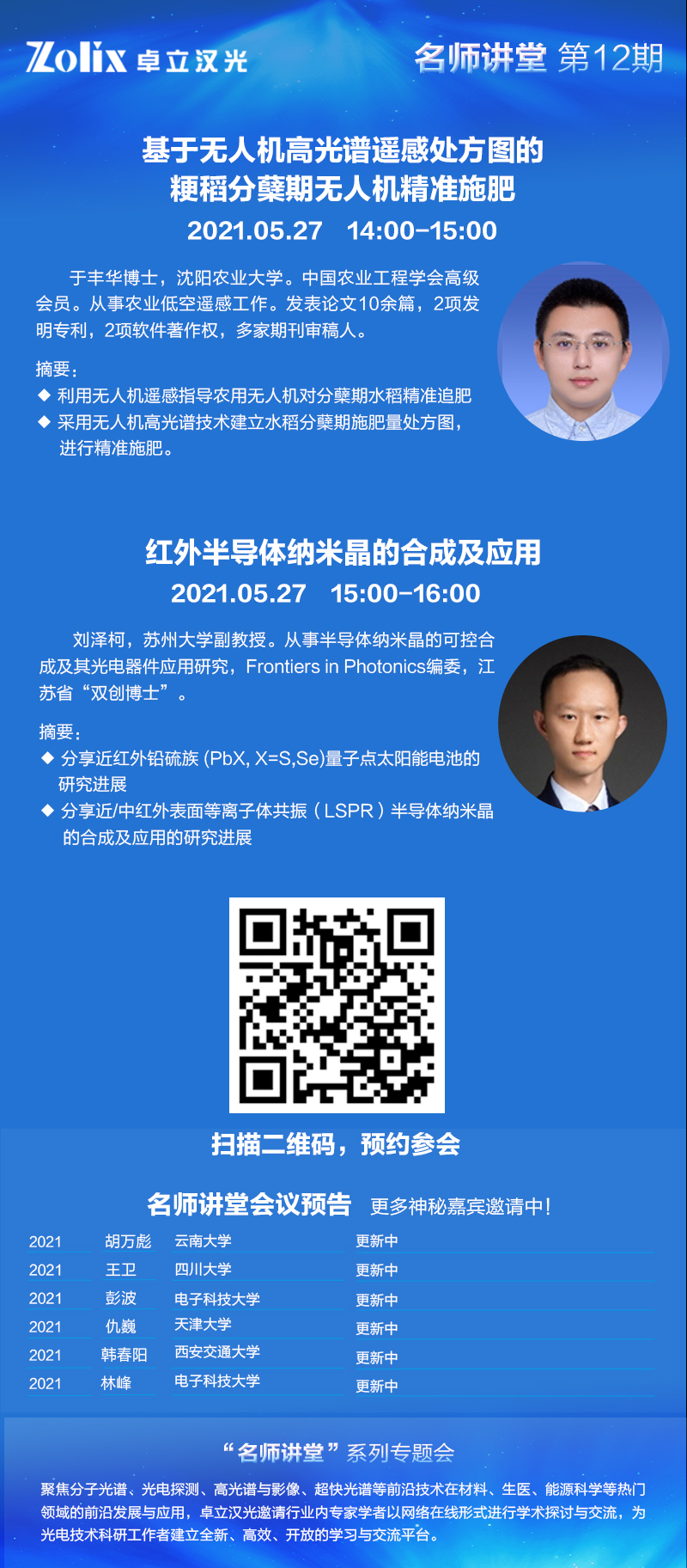 2021年5月27日 14:00-16:00,卓立漢光邀請(qǐng)兩位專家:沈陽農(nóng)業(yè)大學(xué)于豐華老師與蘇州大學(xué)劉澤柯老師為大家做分享,您將有如下課程收獲: