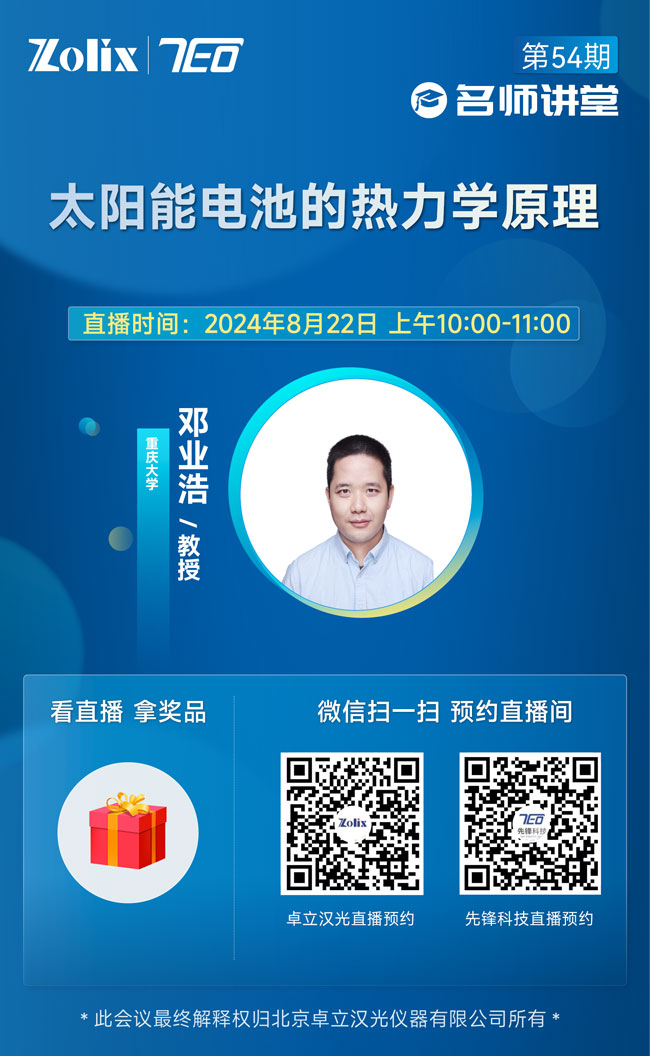 8月22日上午10:00—11:00,重慶大學(xué)教授——鄧業(yè)浩為大家?guī)碇v座《太陽能電池的熱力學(xué)原理》。直播期間更有豐富好禮相送,歡迎屆時參加!