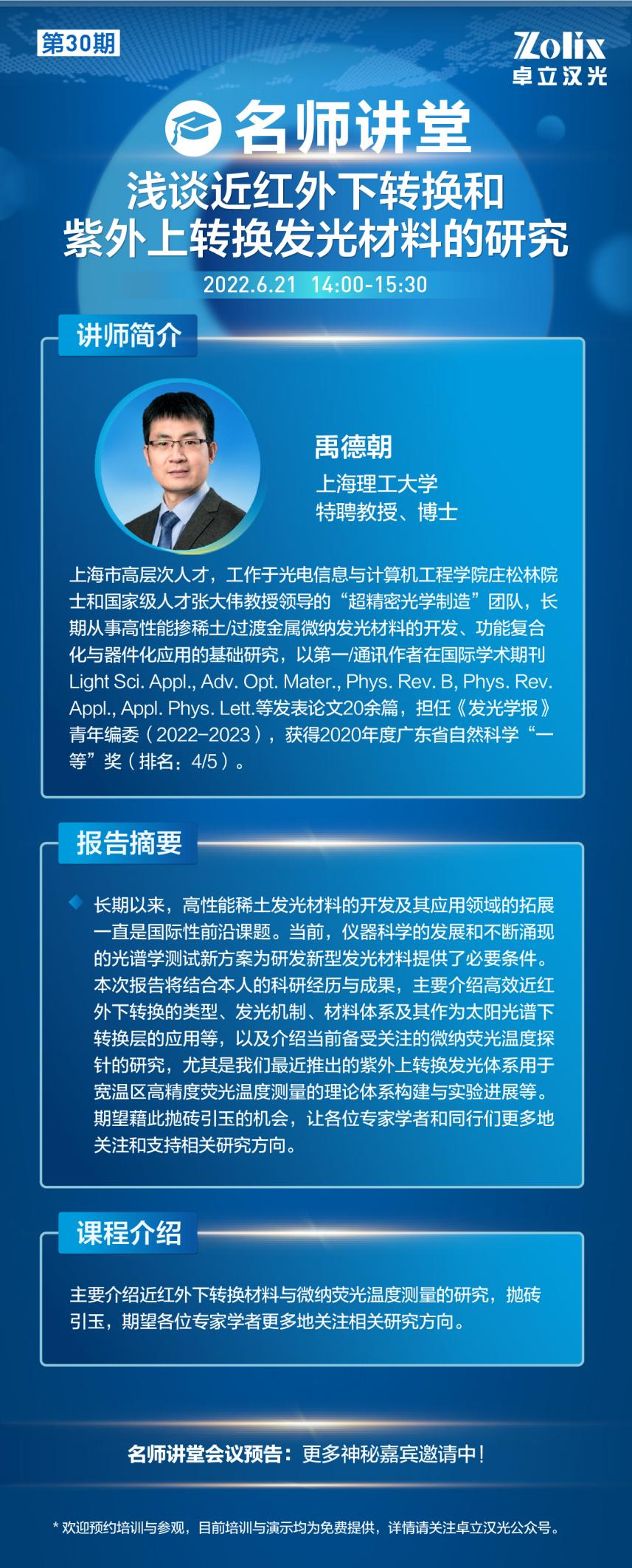 追蹤前沿技術(shù),深化熱門應(yīng)用聚焦分子光譜、光電探測(cè)、高光譜與影像、超快光譜等前沿技術(shù)在材料、生醫(yī)、能源科學(xué)等熱門領(lǐng)域的前沿發(fā)展與應(yīng)用,卓立漢光邀請(qǐng)行業(yè)內(nèi)專家學(xué)者以網(wǎng)絡(luò)在線形式進(jìn)行學(xué)術(shù)探討與交流,為光電技術(shù)科研工作者建立全新、高效、開放的學(xué)習(xí)與交流平臺(tái)。