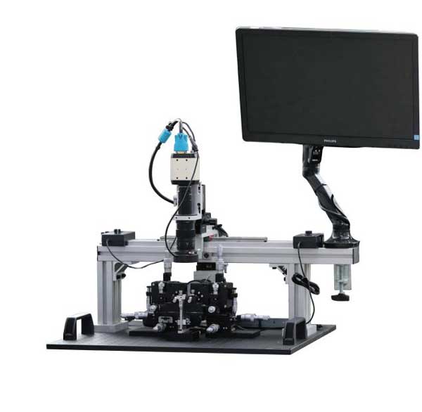 系統(tǒng)功能:將平面波導器件上的各個導光通路(即波導通路)與光纖陣列中的光纖一一對準,然后點膠、固化。卓立漢光提供的PLC 光分路器耦合系統(tǒng)可提供較高對準精度!