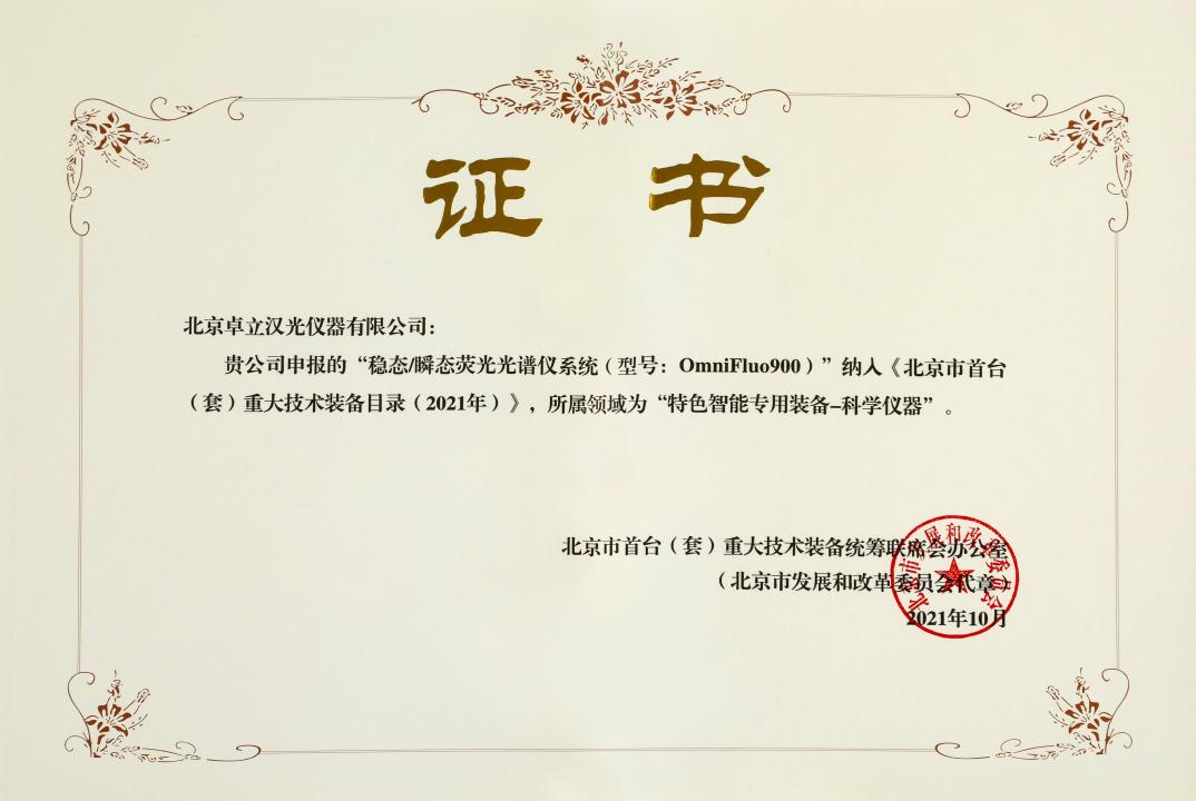 在經(jīng)過北京市多部門的遴選認(rèn)定后,卓立漢光的產(chǎn)品OmniFluo900穩(wěn)態(tài)/瞬態(tài)熒光光譜儀脫穎而出,被納入《北京市首臺(tái)(套)重大技術(shù)裝備目錄(2021年)》。該產(chǎn)品不僅打破了國外壟斷,填補(bǔ)了國內(nèi)空白,而且為我國前沿科學(xué)研究和戰(zhàn)略新興產(chǎn)業(yè)高端設(shè)備的自主可控提供了重要支撐。