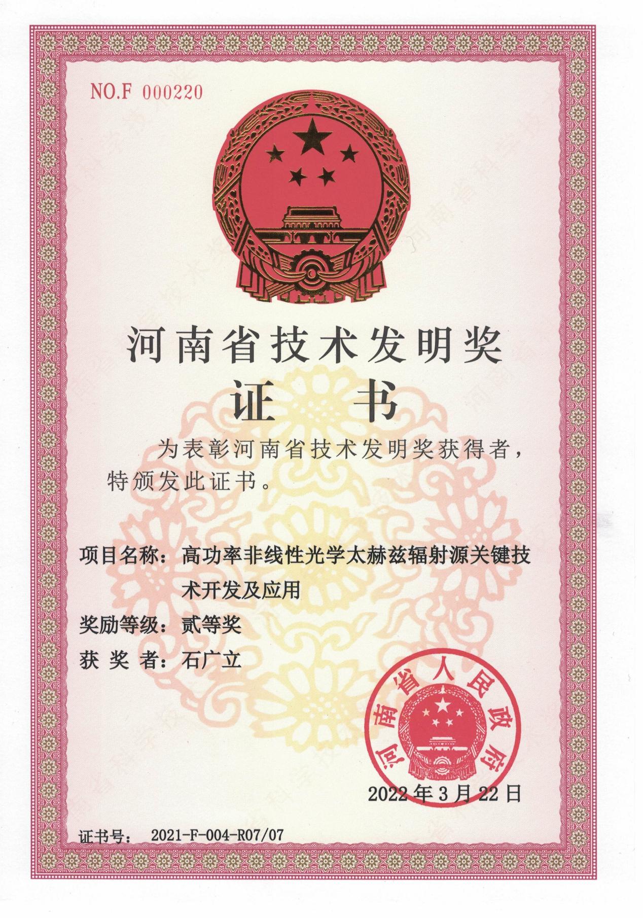 近日,河南省人民政府發(fā)布《關(guān)于2021年度河南省科學(xué)技術(shù)獎勵的決定》,公示了《2021年度河南省技術(shù)發(fā)明獎獲獎項目目錄》,由北京卓立漢光儀器有限公司與華北水利水電大學(xué)、天津大學(xué)共同完成的“高功率非線性光學(xué)太赫茲輻射源關(guān)鍵技術(shù)開發(fā)及應(yīng)用”科技成果榮獲河南省技術(shù)發(fā)明獎二等獎。