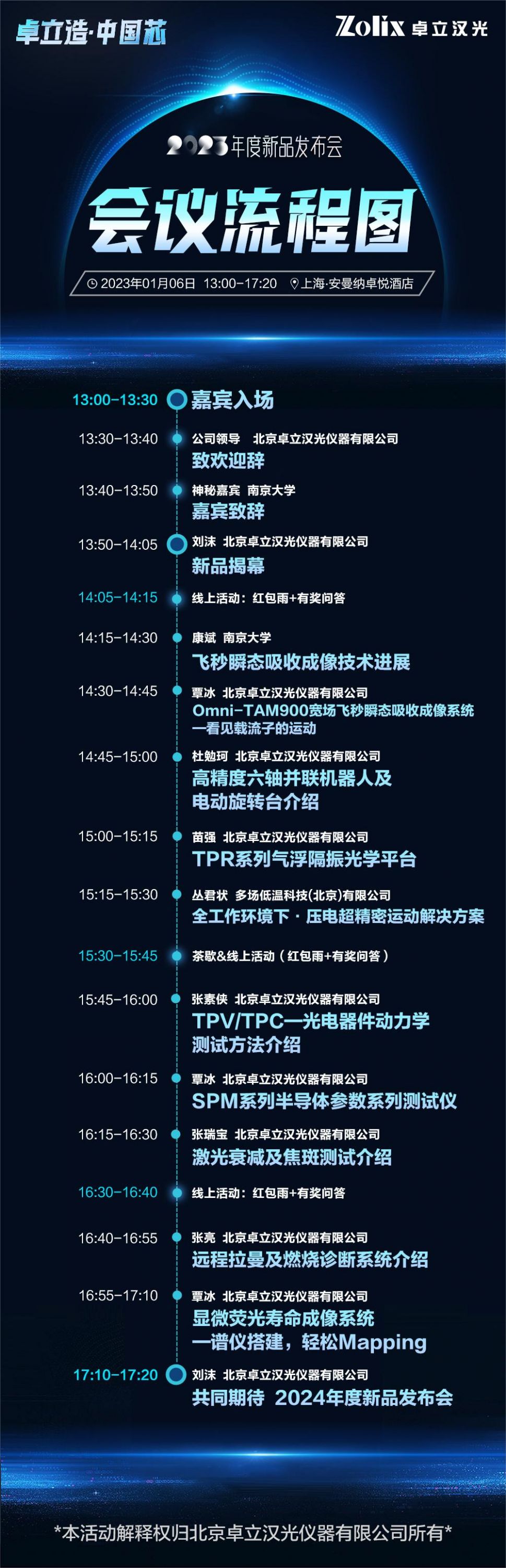 鑒于目前全國疫情發(fā)展的不確定性,為保障所有與會人員的健康安全,確保會議質(zhì)量,經(jīng)公司研究決定,原定于2022年12月27日舉辦的“2023年度卓立漢光新品發(fā)布會”將延期至2023年1月6日于上海.安曼納卓悅酒店舉辦(地點(diǎn)及議程不變)。