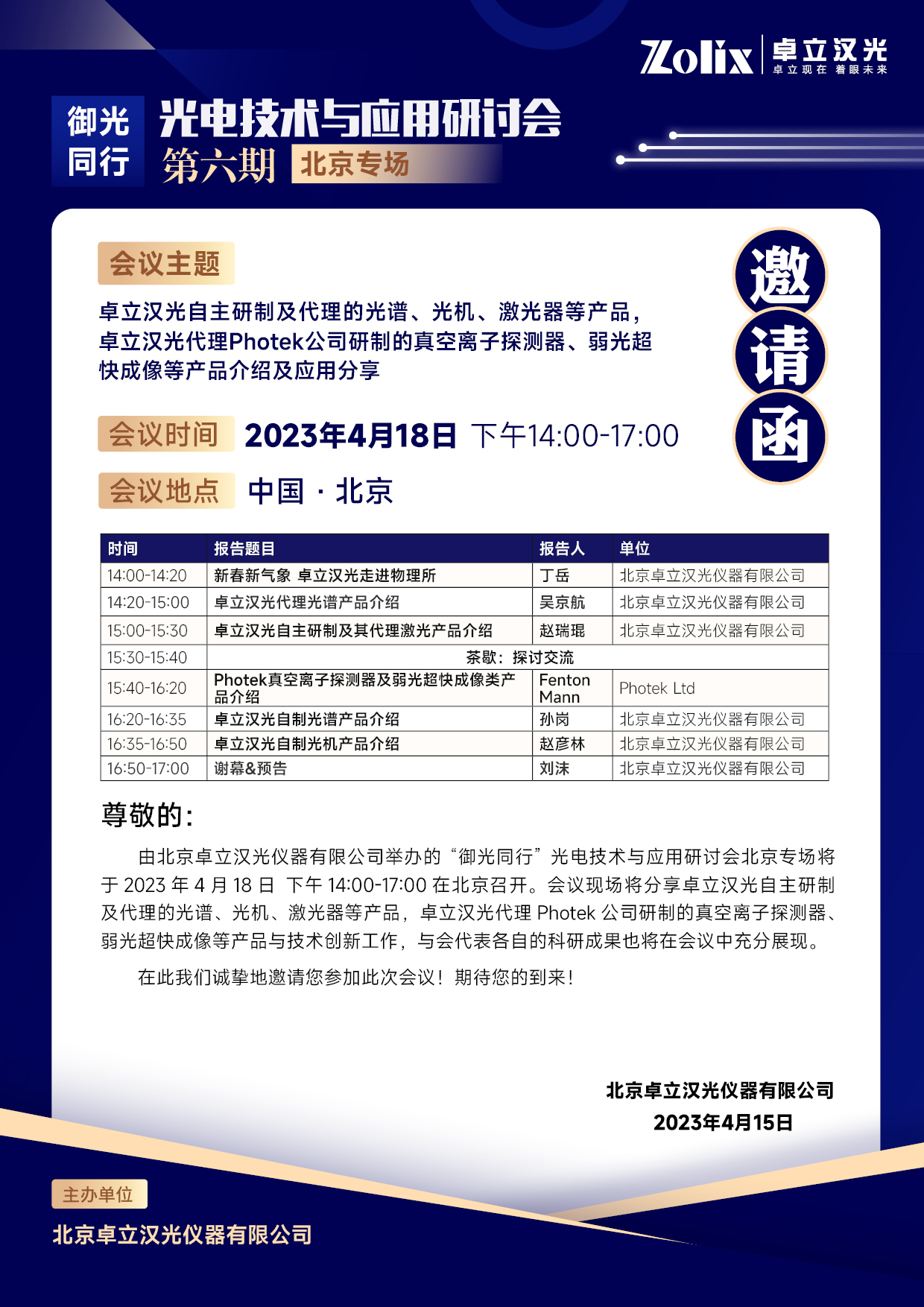 以專業(yè)、熱情的服務(wù)態(tài)度,為廣大用戶提供高規(guī)格、高質(zhì)量產(chǎn)品,是卓立漢光堅持不懈的服務(wù)宗旨。期待卓立漢光 “御光同行”光電技術(shù)與應(yīng)用研討會可以為廣大科學(xué)工作者形成自由研討的學(xué)術(shù)氛圍,激發(fā)顛覆性創(chuàng)新泉涌,推動科研成果工程化和產(chǎn)業(yè)化的進(jìn)程。