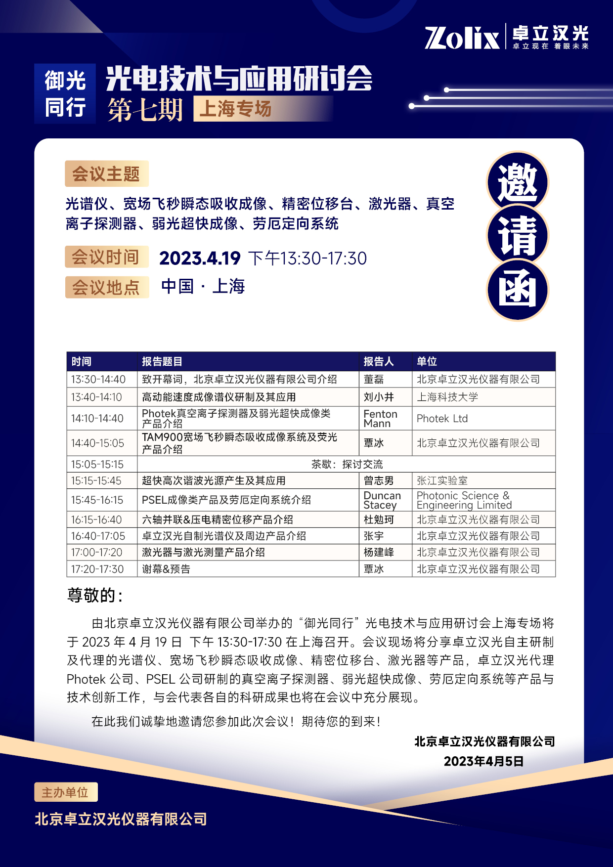 截至目前,卓立漢光已順利舉辦了五期線下/線上研討會,觀眾熱情高漲,為了滿足大家對會議的期待,接下來的三期“御光同行”主題研討會將分別在北京、上海、合肥舉辦,誠邀會議所在城市及周邊單位的專家學(xué)者參加會議。