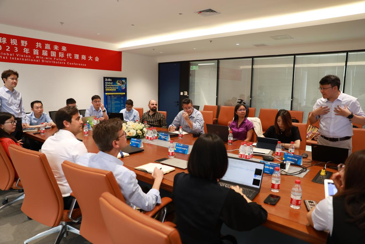 卓立漢光董磊副總經(jīng)理還帶著國際代理商和國內(nèi)產(chǎn)品用戶代表實(shí)地參觀了公司的研發(fā)中心與產(chǎn)品生產(chǎn)線,讓大家進(jìn)一步了解卓立漢光的產(chǎn)品品質(zhì),并且對產(chǎn)品和業(yè)務(wù)有了更深的了解與認(rèn)識。期間,業(yè)務(wù)發(fā)展部的專家們?yōu)楦鲊砩毯蛧鴥?nèi)產(chǎn)品用戶介紹了卓立漢光眾多自制產(chǎn)品線(包括主研制的光電模組、熒光、拉曼、光電探測、高光譜、光學(xué)機(jī)械與元件、納米壓電位移臺等)新產(chǎn)品新技術(shù),也互相交流了想法和經(jīng)驗(yàn),共同提升業(yè)務(wù)知識、探索全球市場。