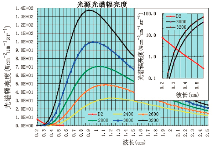 另外,從光譜輻射度曲線可以看出,對于同一類型的光源, 功率不同的時候,光譜輻射度差異并不大,所以,在光譜系統(tǒng)中不能單純通過提高光源的功率的方式來提高信號的強度,還需要綜合考慮光源收集效率的問題。在經(jīng)過優(yōu)化的光源收集系統(tǒng)中,往往可以采用較小功耗的光源取代高功耗的光源。