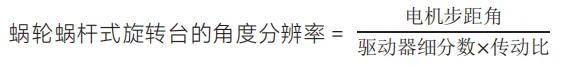 •蝸輪蝸桿式旋轉(zhuǎn)臺(tái)的角度分辨率可以用如下公式計(jì)算: