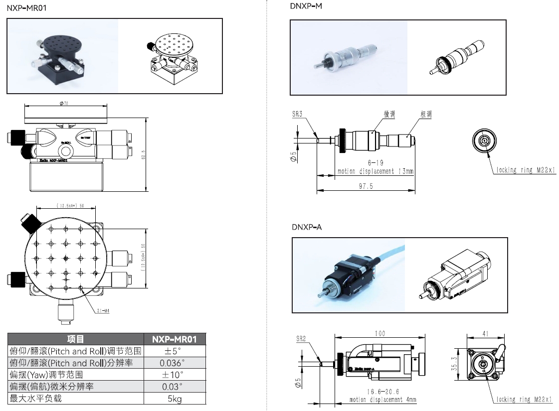 X、Y、Z直線行程為4mm。Rx、Ry、Rz(擺動、俯仰和偏轉(zhuǎn))行程為4°(70mrad) |