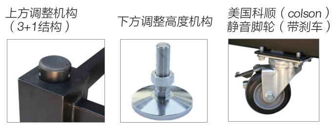 • 標(biāo)準(zhǔn)臺面上臺板材料為SUS430(1Cr17 ) 高導(dǎo)磁不 銹鋼,臺面也可選擇整體材料為SUS304弱磁不銹鋼面包板, 臺面也可選擇整體材料為SUS316極弱磁不銹鋼面包板。