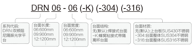 DRN系列精密雙頻阻尼隔振光學平臺技術指標: