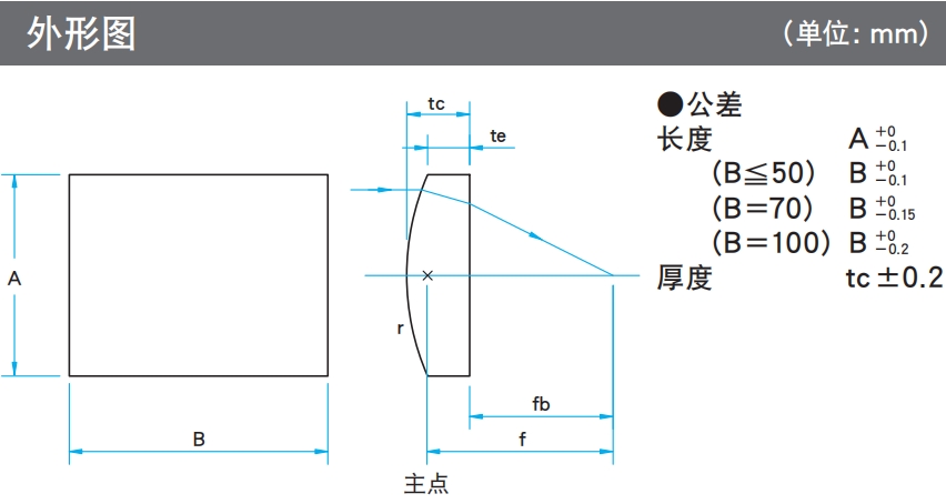 ?柱面平凸透鏡有色差,焦距隨波長(zhǎng)變化。各波長(zhǎng)的焦距請(qǐng)參考網(wǎng)頁(yè)上的“焦距隨波長(zhǎng)變化特性數(shù)據(jù)”確認(rèn)。