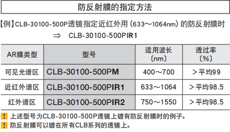 防反射膜的指定方法: