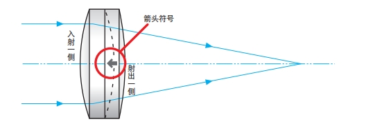?入射消色差透鏡的平行光有方向性,要從曲率半徑較小的一側(cè)(有箭頭符號(hào)指向的一面)射入平行光。從相反的一側(cè)射入平行光時(shí),會(huì)產(chǎn)生色差或球差,焦點(diǎn)光斑會(huì)變大。