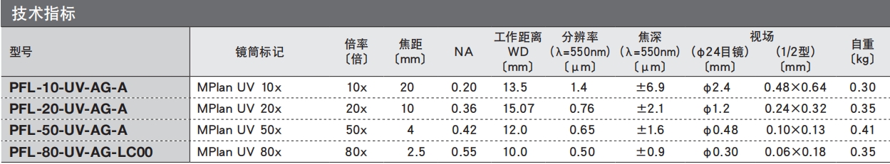 ?倍率為使用f=200mm管鏡時(shí)的數(shù)值。使用其他廠商生產(chǎn)的顯微鏡管鏡時(shí)倍率有可能不同。首先要確認(rèn)使用成像管鏡的焦距,從管鏡焦距和物鏡焦距的比例來(lái)求出實(shí)際倍率。