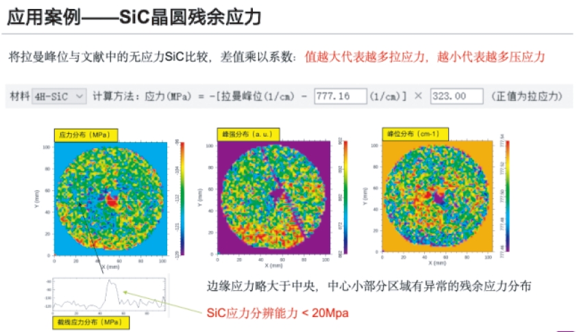 **功能:應(yīng)力擬合:針對(duì)Si、GaN、SiC等多種材料,從拉曼光譜中解析材料的應(yīng)力變化,直接獲得應(yīng)力定量數(shù)值,并可根據(jù)校正數(shù)據(jù)進(jìn)行校正。