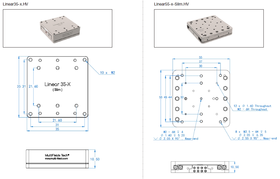 Linearxx-X極低溫線性壓電位移臺尺寸圖