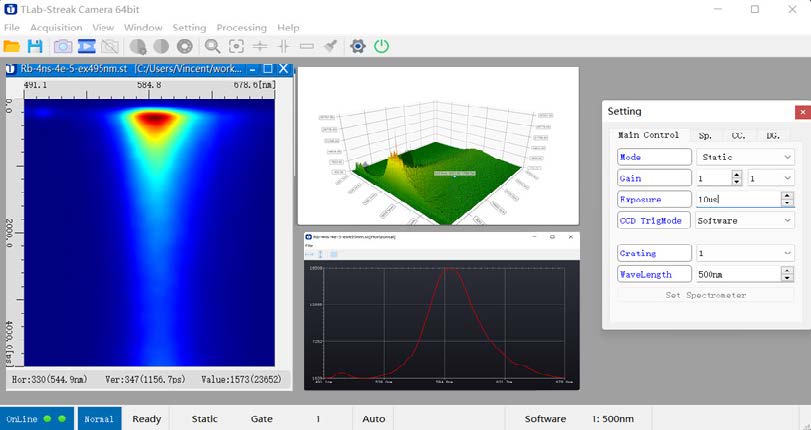 通用型條紋相機(jī) 是特指面向普通科研市場的通用掃描型條紋相機(jī)。該系列條紋相機(jī)采用高頻條紋變像管,掃描頻率*高可達(dá)200MHz以上. 該產(chǎn)品集成了單次觸發(fā)掃描模塊與高頻掃描模塊,在極大降低用戶使用難度的基礎(chǔ)上,拓寬了條紋相機(jī)的使用范圍。配合光譜測試系統(tǒng),可實現(xiàn)200nm到900nm光譜范圍高靈敏時域光譜測量,進(jìn)一步使得條紋相機(jī)真正實現(xiàn)了通用化,走進(jìn)普通實驗室。