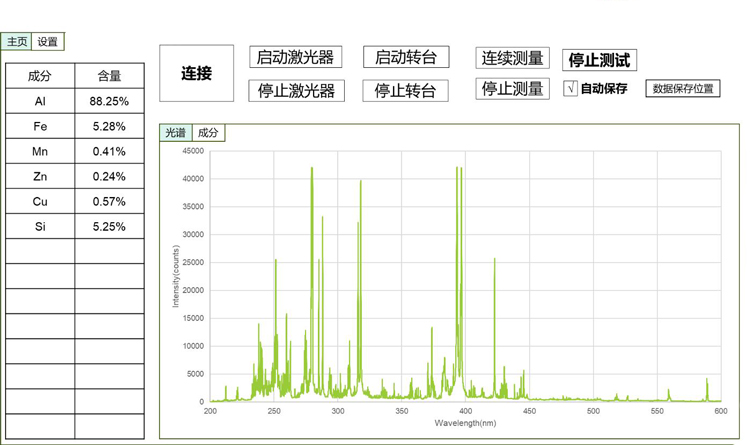光譜顯示(峰值、半高寬)、譜線識(shí)別、文件自動(dòng)保存