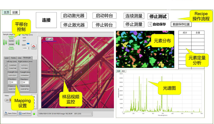 基于激光和視覺算法的自動(dòng)對(duì)焦系統(tǒng),對(duì)樣品表面實(shí)時(shí)跟蹤實(shí)現(xiàn)LIBS的自動(dòng)跟焦和Mapping。