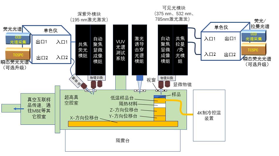 為用戶提供適配真空互聯(lián)多模組系統(tǒng)的多模組光譜測試系統(tǒng),可在超高真空低溫條件下,在同一真空腔體中實(shí)現(xiàn)如下功能: