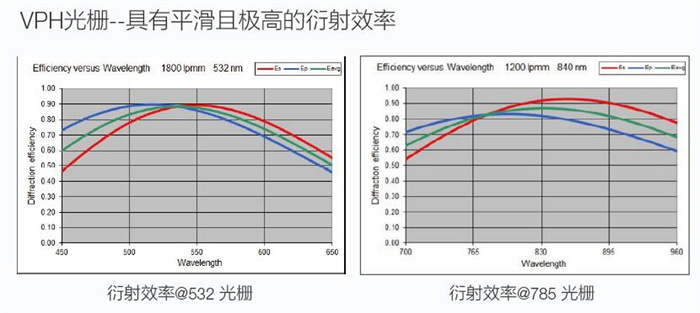 高透射VPH光柵保證了高衍射效率,增透鍍膜透鏡確保了最大的通光效率,從而實(shí)現(xiàn)了可見或近紅外最大的通光量
