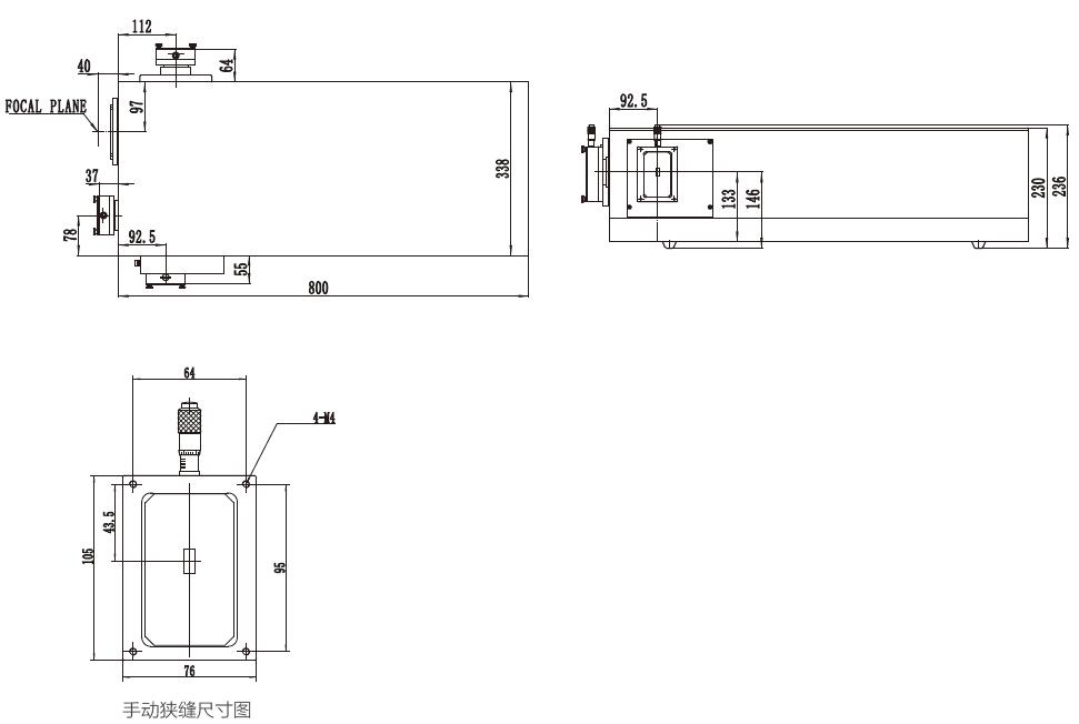 縫寬0.01-3mm連續(xù)手動可調(diào),可選配自動狹縫??p高:2、4、14mm可選 |