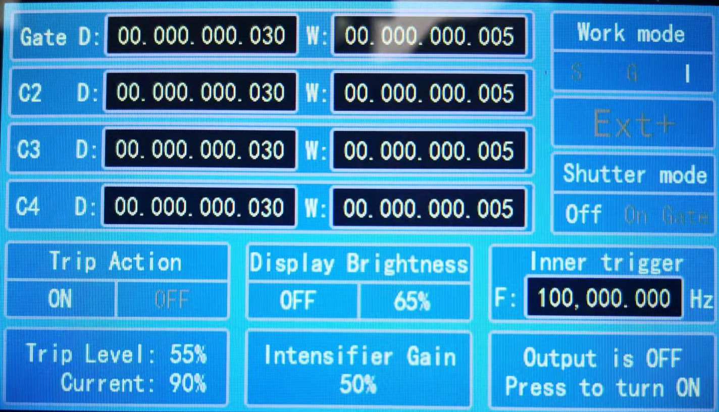● 門控Gate及同步輸出信號(hào)三路輸出調(diào)節(jié),包括信號(hào)寬度以及延遲時(shí)間;