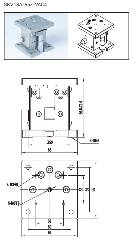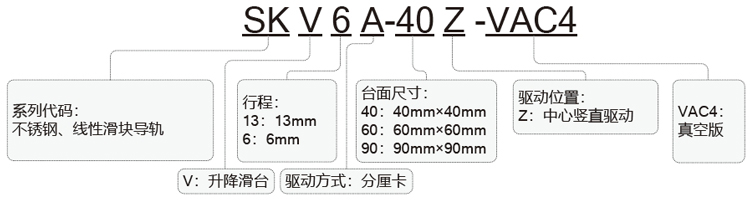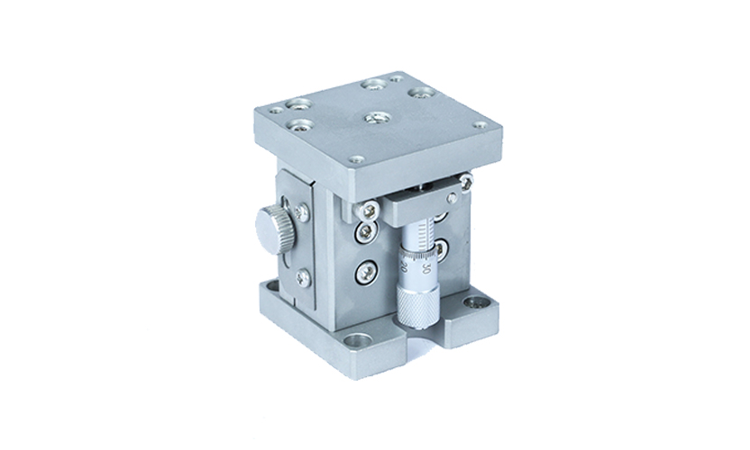 SKV 系列是采用直頂式結(jié)構(gòu)的高精密手動(dòng)升降滑臺(tái)。該系列產(chǎn)品采 用分厘卡驅(qū)動(dòng),使用直線滑塊導(dǎo)軌導(dǎo)向,保證臺(tái)面升降時(shí)具有很好的運(yùn)動(dòng) 精度。臺(tái)面多種標(biāo)準(zhǔn)孔位的安裝孔適合不同需要, 下方標(biāo)準(zhǔn)固定孔方便將 其與其他滑臺(tái)連接,組成多維移動(dòng)臺(tái)。