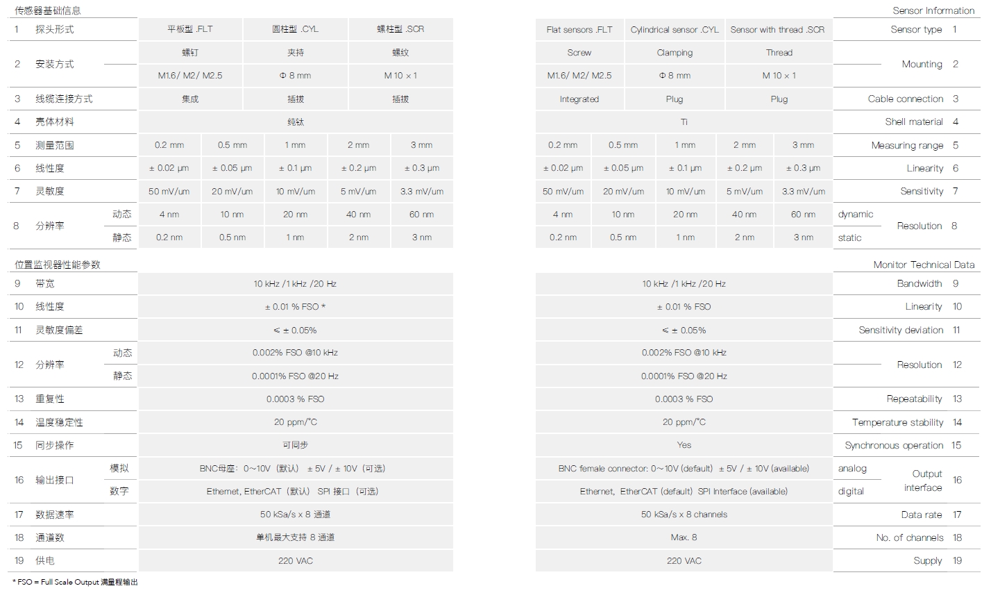 提供平板、圓柱和螺柱三種探頭形式,量程覆蓋范圍 0.2 mm, 0.5 mm, 1mm, 2mm & 3mm,并提供高真空.HV, 超高真空.UHV 和完全無磁材料.NM 的多版本選擇