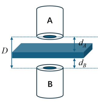 測量原理: 在被測導(dǎo)體兩側(cè)相對安裝兩只傳感器( Sensor A 和 Sensor B),其端面之間的距離 D 固定。 厚度的計算公式為 Thickness= D - (dA + dB),其中 dA 和 dB 分別為兩只傳感器所測到的金屬表面距離的精確讀數(shù)。