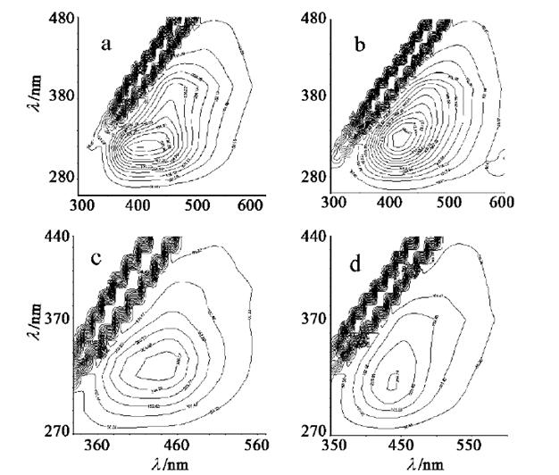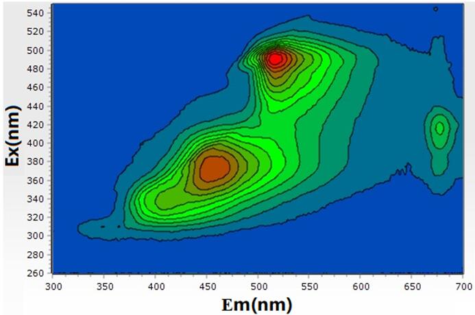 三維熒光光譜(EEMs)是將熒光強(qiáng)度以等高線方式投影在以激發(fā)光波長(zhǎng)和發(fā)射光波長(zhǎng)為縱橫坐標(biāo)的平面上獲得的譜圖,圖像直觀,所含信息豐富。